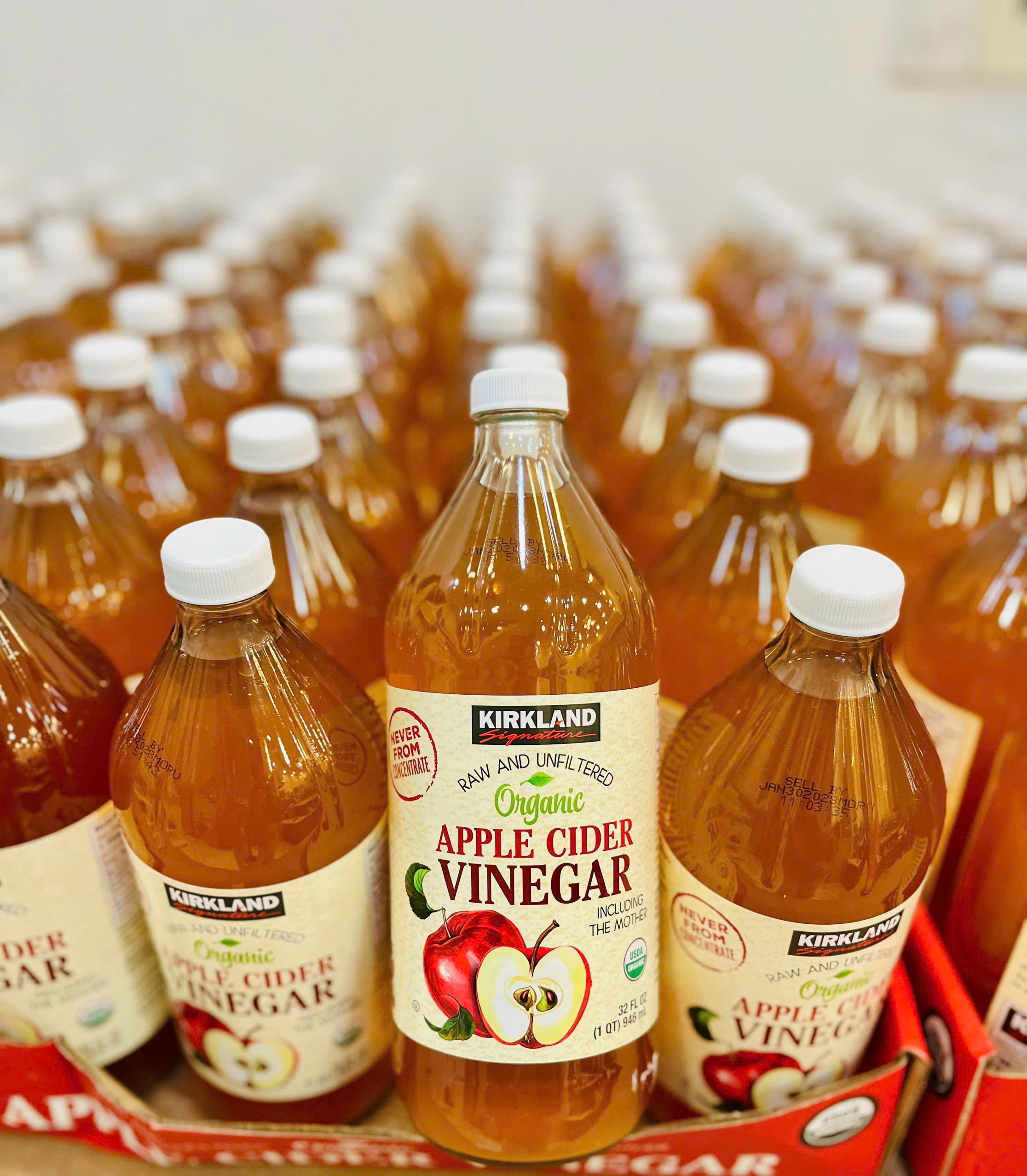 Giấm Táo Kirkland Apple Cider Vinegar (946ml) – Giấm táo nguyên chất từ thương hiệu Kirkland Signature (USA), được lên men tự nhiên từ táo tươi, giữ nguyên “mẹ giấm” (Mother) giàu enzyme và lợi khuẩn. Sản phẩm hỗ trợ giải độc, kiểm soát cân nặng, tốt cho tiêu hóa và làm đẹp da.